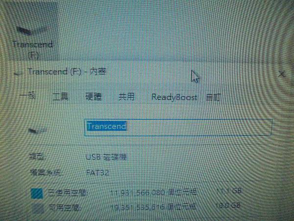 【下班送測】Transcend創見730→32GB隨身碟先插在公司電腦讀取使用後~帶回家插進電腦彈出中毒訊息→刪除中毒檔案時卻一併刪除照片~要救回孩子的照片檔案→Transcend(F)可用空間18GB大小總計29.1GB~新北市土城區-朱小姐【使用空間11.1GB】