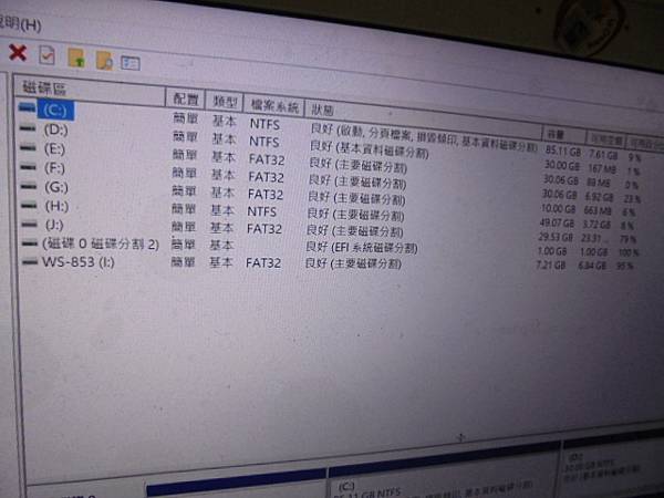 ACER宏碁E5-471G→筆記型電腦開機後沒有運作時~磁碟處理程序過高→作業系統用起來卡卡的~更換SSD硬碟解決問題→檢視三個使用磁碟區檔案系統為NTFS~新北市樹林區-顏小姐【另有六個磁區】 - 2017: