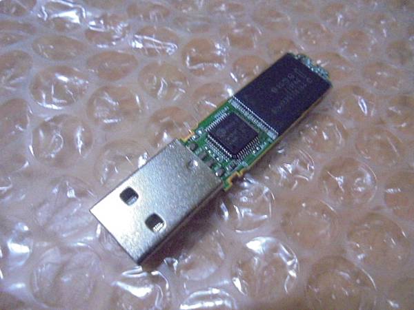 【檔案都在】SONY索尼Storage Media→4GB隨身碟使用多年插在桌上型電腦讀取~孩子跑過去不慎踢到→撞彎USB接頭歪斜約50度導致無法使用~已救出工作檔案資料→備氣泡袋將完修的SONY索尼隨身碟PCB放入→臺北市金山南路-陳先生【捆好橡皮筋】