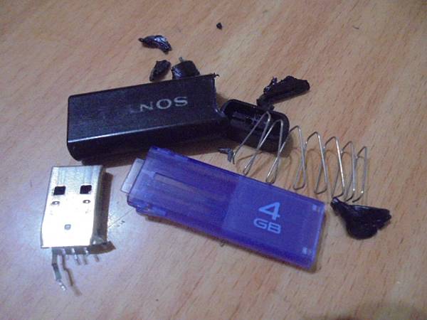 【完修帶回】SONY索尼4GB~Storage Media隨身碟使用多年插在桌上型電腦讀取→孩子跑過去不慎踢到~撞彎USB接頭歪斜約50度導致無法使用~要救出工作檔案資料~客戶滿意帶回SONY隨身碟~臺北市金山南路-陳先生【破壞拆出的全部機構零件丟棄】
