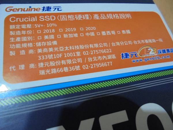 【7mm厚度】Crucial美光BX500固態硬碟240GB~SSD要做備份硬碟→送測ADATA威剛XPG SX930固態硬碟480GB~通電檢測SSD硬碟並無異常→購買新硬碟裝入全部檔案~貼有代理商Genuine捷元貼紙三年保固→臺北市園區街-謝先生【Origin Thailand泰國】