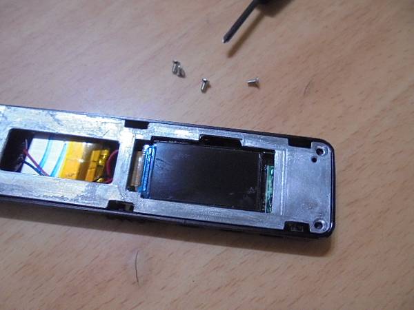 【無法過電】Lenovo聯想D11~B610錄音筆16GB在網路上購買→已經錄好很多工作上使用的錄音檔案~欲開機播放音檔時卻不能開機→想救回錄音筆裏的工作錄音檔案~取十字起子將4顆螺絲~新北市中和區-連小姐【鎖進D11錄音筆金屬隔板的螺絲孔洞】