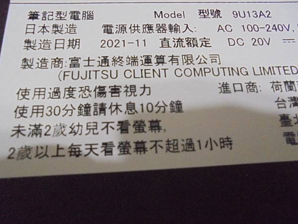 【超級輕薄】FUJITSU富士通LIFEBOOK UH-X→9U13A2筆記型電腦878g重量~公司的工務部門需求超輕薄筆電→長時間不在室內無法做充電~方便攜帶加高續航力使用→intel INSIDE FUJITSU~新北市板橋區-鄭先生【Model型號9U13A2 DC 20V 3.25A】 - 2022: