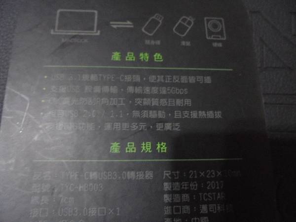 【現場示範】T.C.STAR連鈺/迪士達電子TYC-HB003→Type-C轉USB 3.0轉接器~送來WONDER旺德WM-R07錄音筆8GB→已救出重要談判的錄音檔案~要用手機聽錄音檔案→產品包裝背面印有產品特色/產品規格~花蓮縣吉安鄉-簡先生【產品型號TYC-HB003GR】
