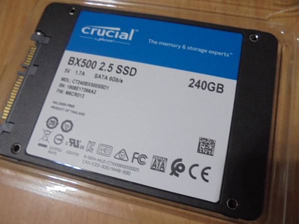 【SATA介面】Crucial美光BX500固態硬碟SSD→240GB成為備份硬碟~送測ADATA威剛XPG SX930固態硬碟480GB→通電檢測SSD硬碟並無異常~購買新硬碟裝入全部檔案→打開透明膠盒→臺北市園區街-謝先生【取出Crucial美光BX500固態硬碟正面背面完整】