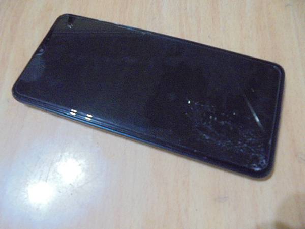 【完工帶回】SAMSUNG三星GALAXY M12智慧型手機128GB~SM-M127F開機使用時放在口袋裏不慎掉落地面→導致PANEL破裂顯示黑屏~要更換新螢幕使用與貼鋼化保護貼→把手機翻到正面已看到摔破的裂痕~臺北市萬大路-鄭小姐【SAMSUNG三星GALAXY M12】