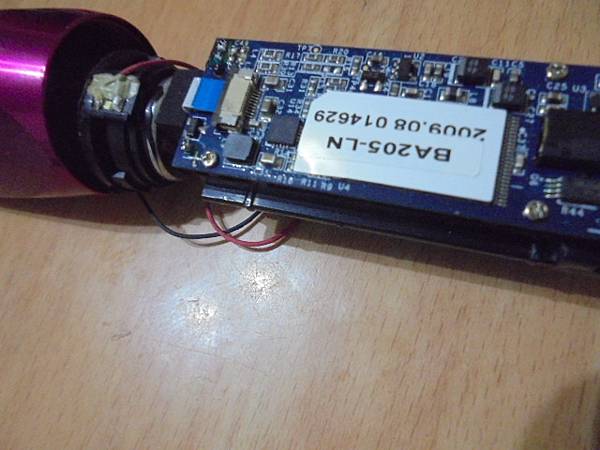 【完修寄還】podio百剛BA205-LN隨身音樂棒2GB~家中長輩在家都會播放這隻La new音樂棒聆聽音樂→但喇叭卻破音導致音樂聽起來不舒服~要更換音樂棒Speaker→喇叭黏貼好於電路板含電池模組~新北市林口區-王小姐【往內推入音樂棒金屬管身】