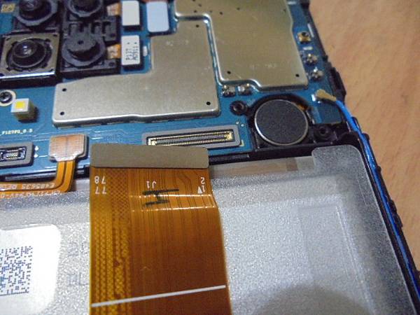 【完工帶回】SAMSUNG三星GALAXY M12智慧型手機128GB~SM-M127F開機使用時放在口袋裏不慎掉落地面→導致PANEL破裂顯示黑屏~要更換新螢幕使用與貼鋼化保護貼→摳開排線壓扣~臺北市萬大路-鄭小姐【連接M12手機下方電路板/上方電路板的排線】