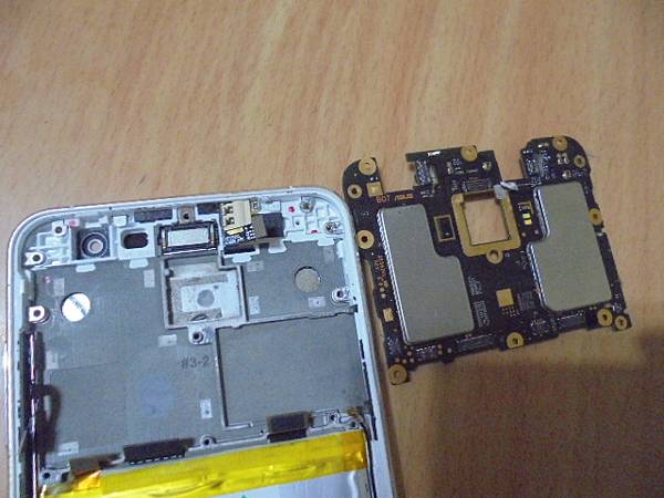 【順便送修】ASUS華碩ZenFone 3→Z012DA智慧型手機64GB使用中螢幕轉為暗屏不能開機~插上充電線也不亮充電燈→要修好螢幕不能顯示問題~救出手機裏檔案資料→借用良品白色ZenFone 3螢幕做過測試判定~臺北市康定路-洪小姐【拉出手機主機板】