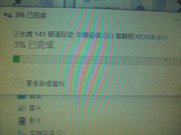 【存隨身碟】WONDER旺德8GB~WM-R07錄音筆是新購買使用→錄製好一個錄音檔後播放試聽時不慎做刪除~又持續拿這隻錄音筆做錄音→已救出重要談判的錄音檔案~正在將141個項目從本機磁碟(G)複製到KIOXIA(H)→花蓮縣吉安鄉-簡先生【3%已完成】