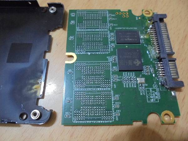 【三年多前】ADATA威剛SX930→240GB硬碟SSD使用於組裝PC~三年多前搭高鐵來找我現場更換SATA接座→完修帶回裝入電腦繼續使用~本次SSD硬碟又出問題讀不到碟→由ADATA威剛SX930金屬下蓋拉出SSD電路板→嘉義縣水上鄉-簡先生【當年補膠還存在】