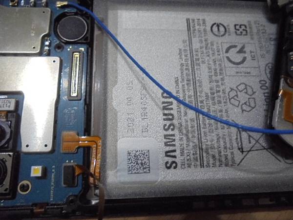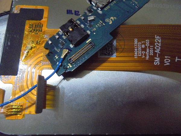 【完工帶回】SAMSUNG三星GALAXY M12智慧型手機128GB~SM-M127F開機使用時放在口袋裏不慎掉落地面→導致PANEL破裂顯示黑屏~要更換新螢幕使用與貼鋼化保護貼→確認SAMSUNG三星M12新品螢幕無異常~臺北市萬大路-鄭小姐【整理下方電路板/接線】