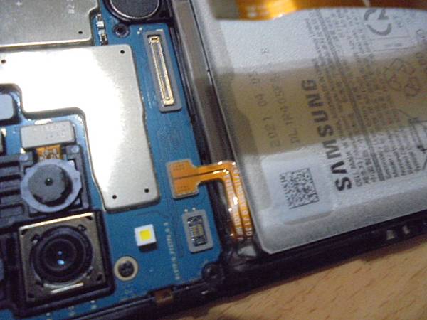 【現場更換】SAMSUNG三星GALAXY M12智慧型手機128GB→手機正常開機使用中放在口袋裏不慎掉落地面~導致螢幕破裂無法顯示→要更換新螢幕使用與貼鋼化保護貼~取十字子鬆開取出→臺北市萬大路-鄭小姐【SAMSUNG三星M12手機電路板上的固定螺絲】