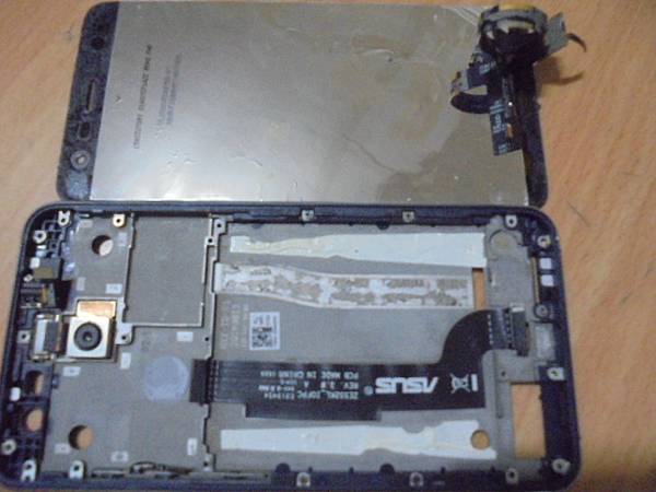 【螢幕損壞】ASUS華碩ZenFone 3~64GB智慧型手機Z012DA使用中螢幕轉為黑屏無法開機→插上充電線也不亮充電燈~已更換新品螢幕→恢復手機裏照片影片正確讀取~把ASUS手機ZenFone 3上蓋電池下方的排線撕開→臺北市康定路-洪小姐【完整撕開】