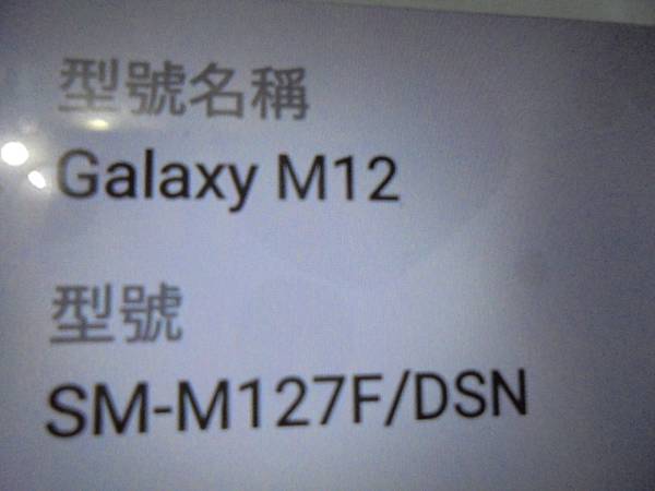 【現場更換】SAMSUNG三星GALAXY M12智慧型手機128GB→手機正常開機使用中放在口袋裏不慎掉落地面~導致螢幕破裂無法顯示→已更換新螢幕使用與貼鋼化保護貼~設定選項/關於手機→臺北市萬大路-鄭小姐【型號名稱Galaxy M12型號SM-M127F/DSN】