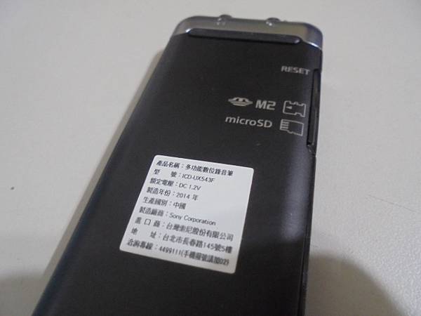 【拆殼判定】SONY索尼4GB~ICD-UX523F錄音筆已使用多年→感覺POWER鍵接觸不良~常常滑動電源鍵開機都沒反應→已修好POWER滑動開關~錄音筆電源開關正常使用→把SONY索尼ICD-UX523F錄音筆翻到背面後平放~南投縣南投市-尹先生【推開電池蓋】 - 2022:
