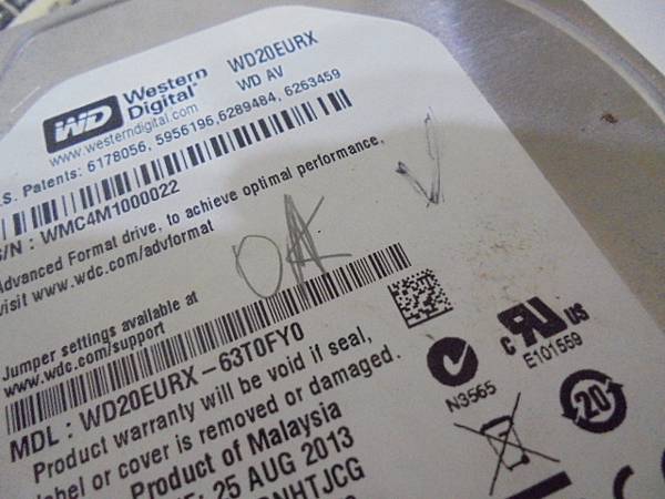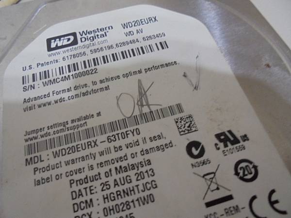 【逐一更換】三家品牌2TB/4TB硬碟九顆~3.5吋裸碟裝在PC使用→更換插拔時將SATA電源接口7Pin/15Pin塑膠片折斷~導致硬碟無法存取→已更換SATA接座讀取檔案~標籤貼紙WDC WD20EURX-63T0FY0裸碟→新北市樹林區-王先生【再取鉛筆畫上打勾記號】