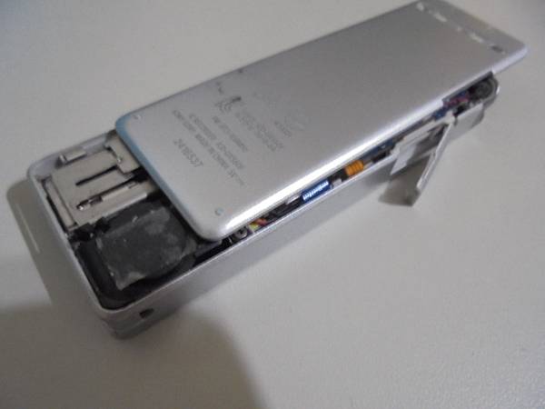 【來電詢問】SONY索尼ICD-UX560F→4GB錄音筆使用多年後~突然無法充電無法傳輸檔案→喜歡錄音音質超好的ICD-UX560F錄音筆~要改為Micro USB接座充電和傳輸→拉開記憶卡保護蓋挖開背蓋~臺北市光復南路-陳小姐【SONY索尼ICD-UX560F移開背蓋】