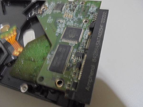【露天拍賣】WD威騰6TB裸碟3.5吋→裸碟當資料碟插入硬碟座讀取使用~平時放在一米高度的桌面→0403地震時由桌面掉落地毯的地面上~導致7Pin接口塑膠片折壞→將硬碟電路板翻至正面~新北市中和區-林先生【目視電路板上全部SMD零件均無損傷】