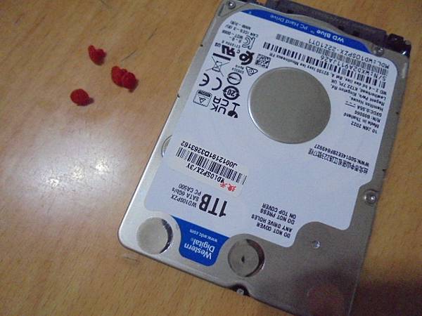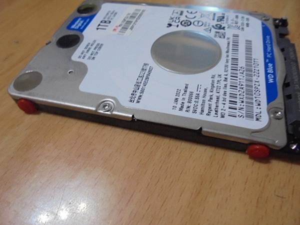 【機械硬碟】Lenovo聯想ThinkPad筆記型電腦E540~已使用多年筆記型電腦近日使用時覺得Speaker發出的聲音不正常→影響玩線上遊戲的心情~要解決喇叭異常問題→WD威騰1TB藍標2.5吋裸碟4個螺絲孔~新北市板橋區-黃先生【依序塞進4顆紅色橡膠】