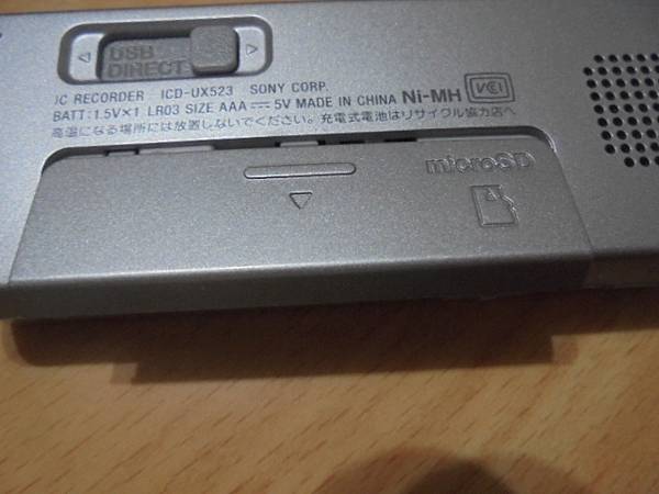 【拆殼維修】SONY索尼ICD-UX523F→4GB錄音筆於日本購買帶回~錄音筆先前均正常使用某天突然無法開機→習慣與操作這隻錄音筆的功能~要修好錄音筆不開機問題→緩緩扣入SONY索尼ICD-UX523F錄音筆電池外蓋後~臺北市同德街-劉小姐【翻回正面】