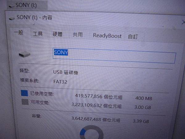 【露天拍賣】SONY索尼ICD-UX560F→4GB錄音筆是日常錄音使用~剛剛喝紅茶時液體倒在桌面流進錄音筆→導致錄音筆無法開機使用~想修好錄音筆不能開機的問題→SONY(I:)內容/已使用空間4MB~臺北市和平西路-李小姐【可用空間3GB大小總計3.39GB】