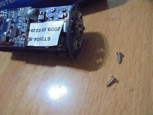 【約定送測】FOSTER自行車MicroAmp音樂棒2GB~家人先前均是使用正常→某次充飽電後無法開機~接上電腦有亮充電燈可以讀到這個裝置→要修好這隻迷你微型音響~鎖進FOSTER音樂棒控制板位置→臺北市芝玉路-陳先生【取十字起子依序將兩顆螺絲】