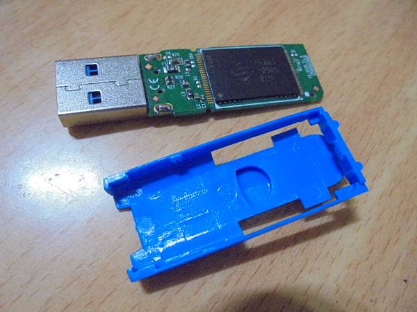 【留碟維修】Transcend創見128GB~790隨身碟USB 3.0插在電腦讀取資料時→折壞USB 3.0接頭後~再插入電腦已讀不到卸除式磁碟→已救回隨身碟重要工作檔案資料~完修的電路板扣進藍色機構→臺北市溫州街-林小姐【Transcend創見790隨身碟128GB】
