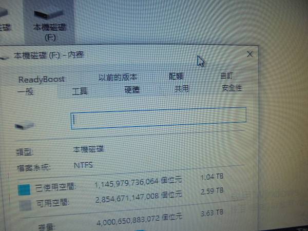 【逐一更換】三家品牌2TB/4TB硬碟九顆~3.5吋裸碟裝在PC使用→更換插拔時將SATA電源接口7Pin/15Pin塑膠片折斷~導致硬碟無法存取→已更換SATA接座讀取檔案~本機磁碟(F:)可用空間2.59TB總計3.63TB→新北市樹林區-王先生【已使用空間1.04TB】