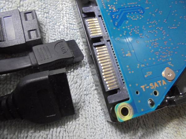 【逐一更換】三家品牌2TB/4TB硬碟九顆~3.5吋裸碟裝在PC使用→更換插拔時將SATA電源接口7Pin/15Pin塑膠片折斷~導致硬碟無法存取→已更換SATA接座讀取檔案~由技嘉主機板拉出USB訊號線→新北市樹林區-王先生【依序拔出SATA訊號線與電源線】