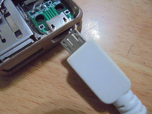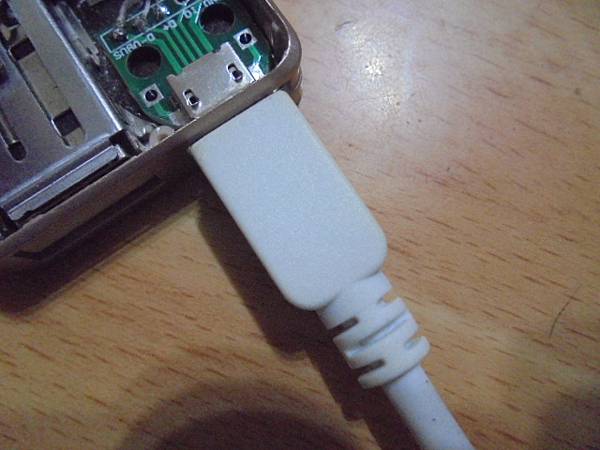 【排線斷裂】SONY索尼ICD-UX560F→4GB錄音筆使用多年~錄音筆忽然無法充電無法傳輸檔案→自行拆殼找到USB排線FPC斷裂~要改為Micro USB接座充電與傳輸檔案→取Micro USB充電傳輸線~屏東縣竹田鄉-李先生【插入SONY索尼ICD-UX560F錄音筆接座】