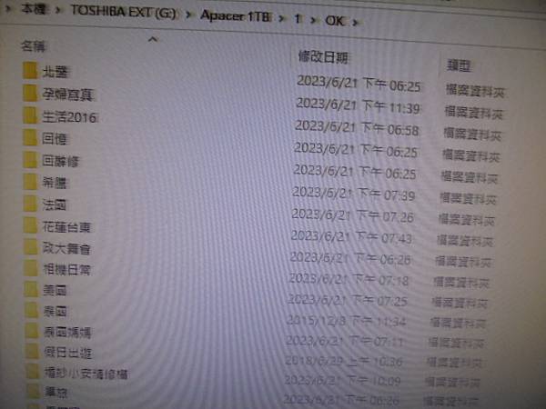 【旅遊照片】Apacer宇瞻AC233→1TB外接式硬碟連接電腦存取~行動硬碟出現無法存取/需格式化視窗→因電腦當機按重開機鍵~要救回國外旅遊與婚紗照片影片檔案→檔案資料夾0磁碟大小261GB~新北市板橋區-周小姐【包含135877個檔案182個資料夾】 - 2023: