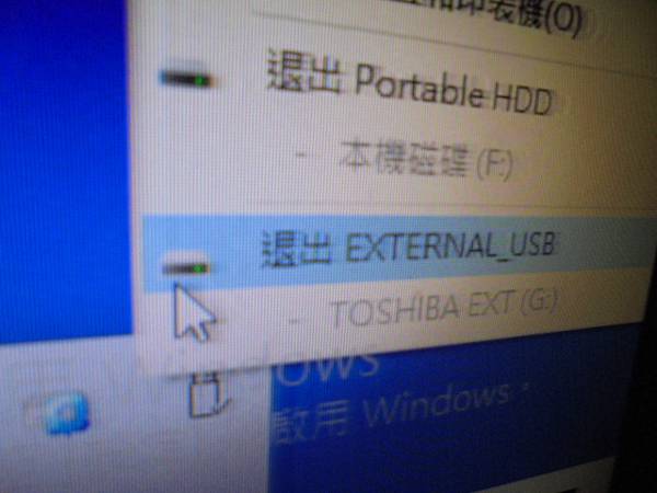 【旅遊照片】Apacer宇瞻AC233→1TB外接式硬碟連接電腦存取~行動硬碟出現無法存取/需格式化視窗→因電腦當機按重開機鍵~要救回國外旅遊與婚紗照片影片檔案→點擊退出EXTERNAL_USB TOSHIBA EXT(G:)~新北市板橋區-周小姐【可以放心移除硬體】