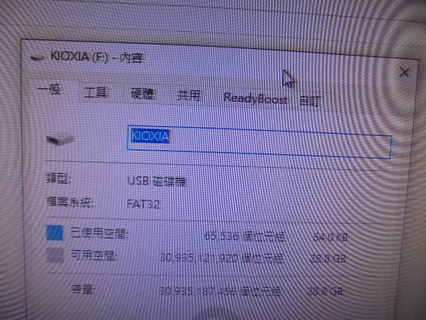 【照片完整】PQI勁永U262~4GB隨身碟插在電腦讀取使用→出現無法存取視窗~需要格式化磁碟機→完全無法讀取隨身碟文件檔案照片檔案~已救回隨身碟裏檔案資料→本機>KIOXIA(F:)~新北市板橋區-劉小姐【已使用空間64KB可用空間28.8GB容量28.8GB】