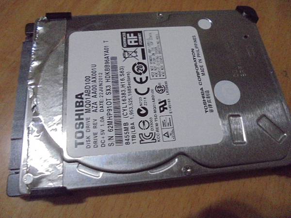 【容量正確】TOSHIBA東芝V6愛線碟1TB~BASICS外接式硬碟USB 3.0接上電腦讀取→出現需要格式化磁碟機視窗~無法存取與參數錯誤視窗→想救回家族成員照片影片~愛線碟V6的上蓋與底殼→臺北市西寧北路-曾先生【拆出的TOSHIBA東芝1TB裸碟2.5吋】