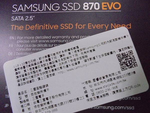 【五年保固】SAMSUNG三星870 EVO固態硬碟500GB→市面上穩定度超高的SATA介面SSD固態硬碟~推薦客戶安裝使用→亦建議客戶購買500GB容量~淘汰傳統機械式硬碟→紙盒標示讀取速度560MB/s寫入速度530MB/s~新北市板橋區-王小姐【代理商:星睿奇】 - 2022: