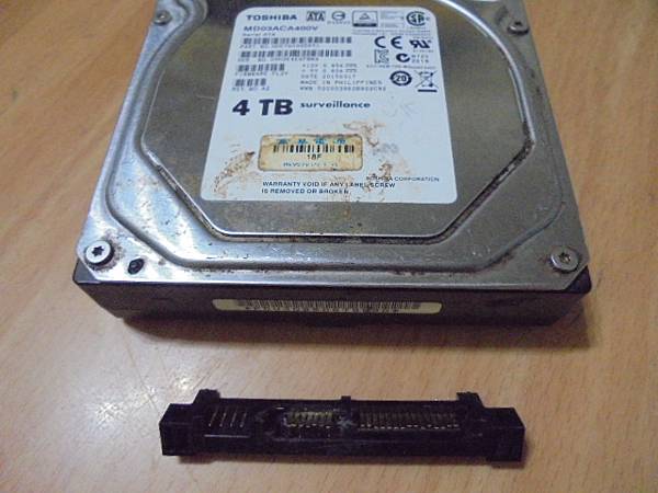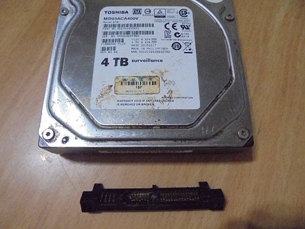 【讀取正確】TOSHIBA東芝4TB硬碟兩顆~3.5吋裸碟裝在PC使用→更換插拔時將SATA電源接口7Pin/15Pin塑膠片折斷~導致硬碟無法存取→已更換SATA接座並讀取檔案~完修的TOSHIBA東芝4TB裸碟3.5吋MD03ACA400V→新北市樹林區-王先生【surveillance】