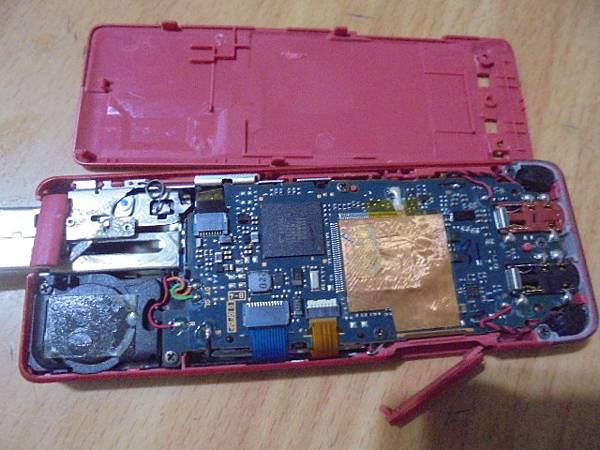 PODIO百剛BA-205 2GB→MP3隨身音樂棒插在遊覽車上做充電播放~卻聞到燒焦味→按電源鍵無法開機~想修好給家人使用→鬆開固定電路板的3顆十字螺絲~新北市板橋區-林先生【拆下的5種8個物品】