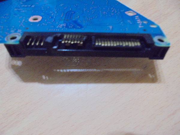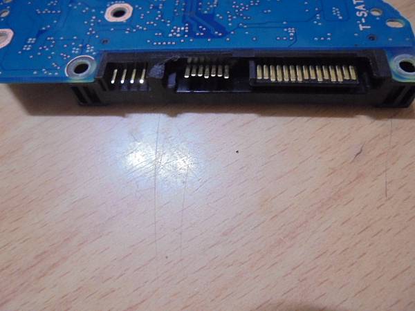 【讀取正確】TOSHIBA東芝4TB硬碟兩顆~3.5吋裸碟裝在PC使用→更換插拔時將SATA電源接口7Pin/15Pin塑膠片折斷~導致硬碟無法存取→已更換SATA接座並讀取檔案~俯視SATA接座遭折斷的程度→新北市樹林區-王先生【TOSHIBA東芝4TB裸碟N300電路板】