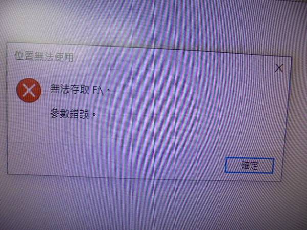 【騎車送測】BUFFALO巴比祿HD-PNTU3→1TB外接式硬碟接在公司PC使用~先前存取檔案都正確→出現無法讀取/參數錯誤~需要格式化磁碟機→要救回工作的檔案資料~位置無法使用 無法存取F:\參數錯誤→臺北市大業路-劉先生【BUFFALO巴比祿HD-PNTU3】