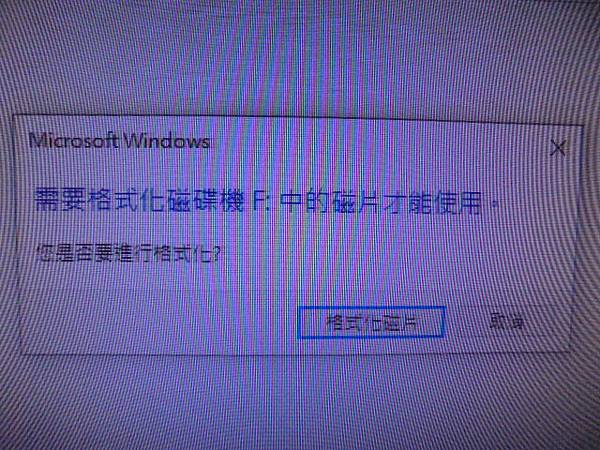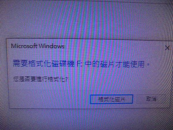 【判定問題】WD威騰2TB~Purple紫標3.5吋裸碟本次整理檔案資料時發生異常→出現需要格式化磁碟機才能使用~位置無法使用無法存取→要救回重要工作資料檔案~需要格式化磁碟機F:中的片才能使用→臺北市中山北路-李先生【您是否要進行格式化】