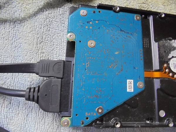 【逐一更換】TOSHIBA東芝4TB硬碟兩顆~3.5吋裸碟裝在PC使用→更換插拔時將SATA電源接口7Pin/15Pin塑膠片折斷~導致硬碟無法存取→已更換SATA接座並讀取檔案~翻至背面TOSHIBA東芝4TB裸碟→新北市樹林區-王先生【依序插上SATA電源線訊號線】