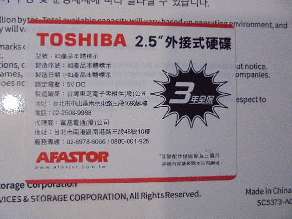 【三年全保】TOSHIBA東芝A5 CANVIO BASICS~2TB行動硬碟USB 3.2→送來檢測BUFFALO巴比祿HD-PNTU3外接式硬碟~建議汰換舊BUFFALO巴比祿硬碟→更換新硬碟使用~TOSHIBA東芝外接硬碟台灣代理商→臺北市大業路-劉先生【AFASTOR富基電通保固貼紙】