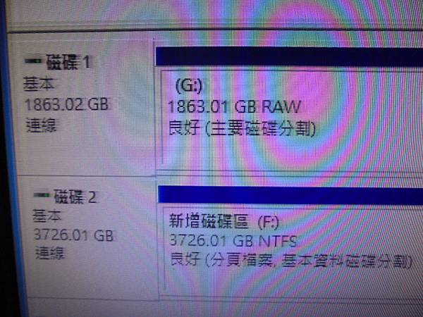 【裝回檔案】WD威騰2TB→3.5吋Purple紫標裸碟是多年前送來救援其他品牌硬碟的檔案~購買新硬碟當資料碟存放→本次整理時出現異常~已救回重要工作檔案資料→磁碟1基本1863.02GB連線(G)~臺北市中山北路-李先生【磁碟2基本3726.01GB連線(F)】