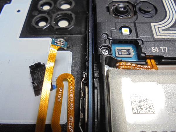 【損壞多次】SAMSUNG三星GALAXY M12智慧型手機128GB→碰撞到手機後螢幕轉黑屏~關機重開後PANEL無法觸控→多次重新開機螢幕無法觸控~要修好手機的觸控問題→拔開電源開關FPC的排線保護蓋~臺北市萬大路-鄭小姐【摳起電源開關FPC排線卡扣】