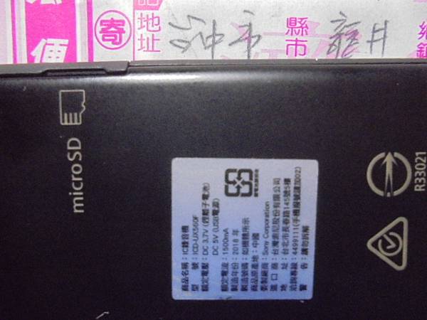 【判定問題】SONY索尼4GB~ICD-UX560F錄音筆先前使用正常→滑動電源鍵無法開機~插上USB接孔沒充電反應→要修好不能充電不開機問題~要救出內建記憶體音檔→由龍井區寄出包裹~臺中市龍井區-楊先生【貼紙/製造年份:2018年/商品原產地:中國】
