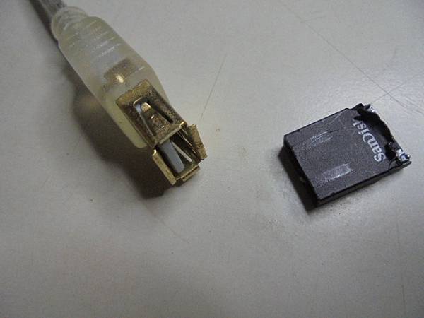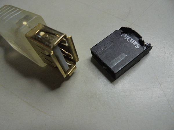 SanDisk晟碟Cruzer Crossfire~2GB隨身碟插桌上型電腦讀取→不慎踢壞USB接頭歪斜而無法使用~已救回隨身碟裏的資料→左手的姆指與食指拉出~花蓮縣吉安鄉-羅小姐【Transcend創見520s】