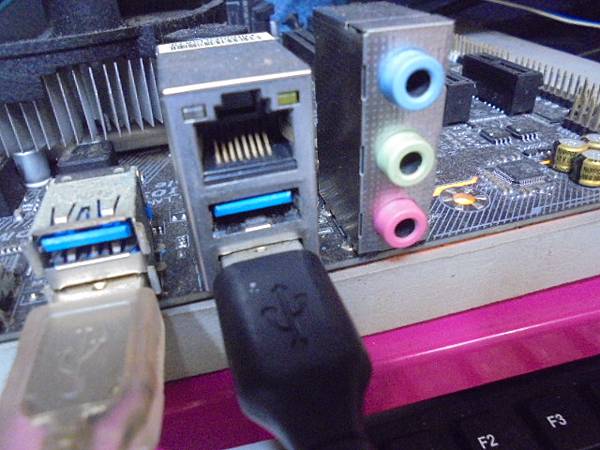 【判定問題】TOSHIBA東芝1TB~3.5吋7200轉裸碟是營業場所的PC使用→於正常使用時突然自動關機~按電源鍵重新開機後進不去作業系統→要救回公司重要檔案資料~取SATA訊號線套入電路板→新北市土城區-黃先生【把傳輸線USB接頭插上技嘉電路板】