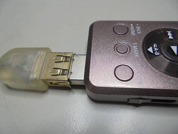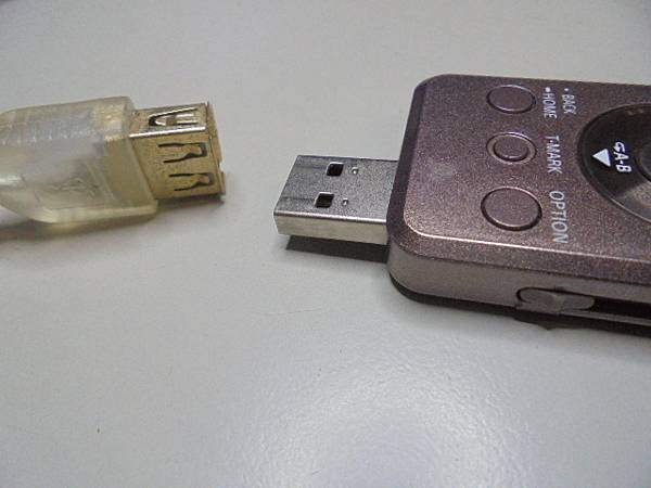 【確認原因】SONY索尼ICD-UX543F~4GB錄音筆錄有重要的錄音檔案→連接PC讀取檔案時~發現USB接頭無法讀取裝置與充電→要改接錄音筆回復傳輸檔案與正確充電~已將USB延長線接上技嘉主機板→臺中市西屯區-葉先生【UX543F錄音筆USB接頭插入接座】