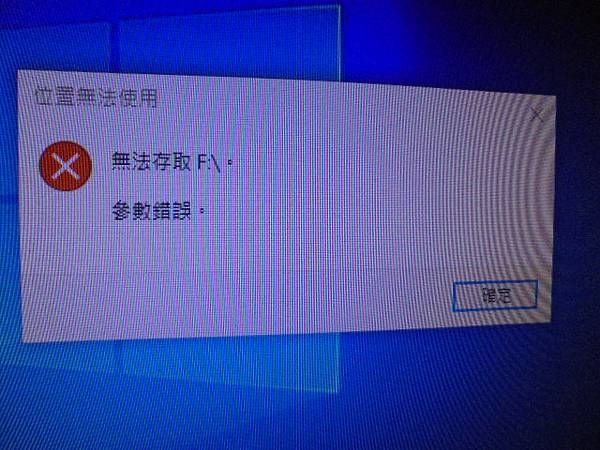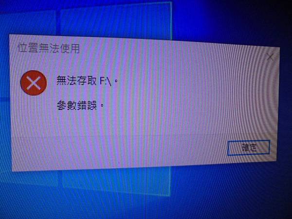 【送達裸碟】TOSHIBA東芝1TB~3.5吋7200轉裸碟是營業場所的PC使用→於正常使用時突然自動關機~按電源鍵重新開機後進不去作業系統→要救回公司重要檔案資料~位置無法使用 無法存取F:\參數錯誤→新北市土城區-黃先生【無法存取F:\參數錯誤】